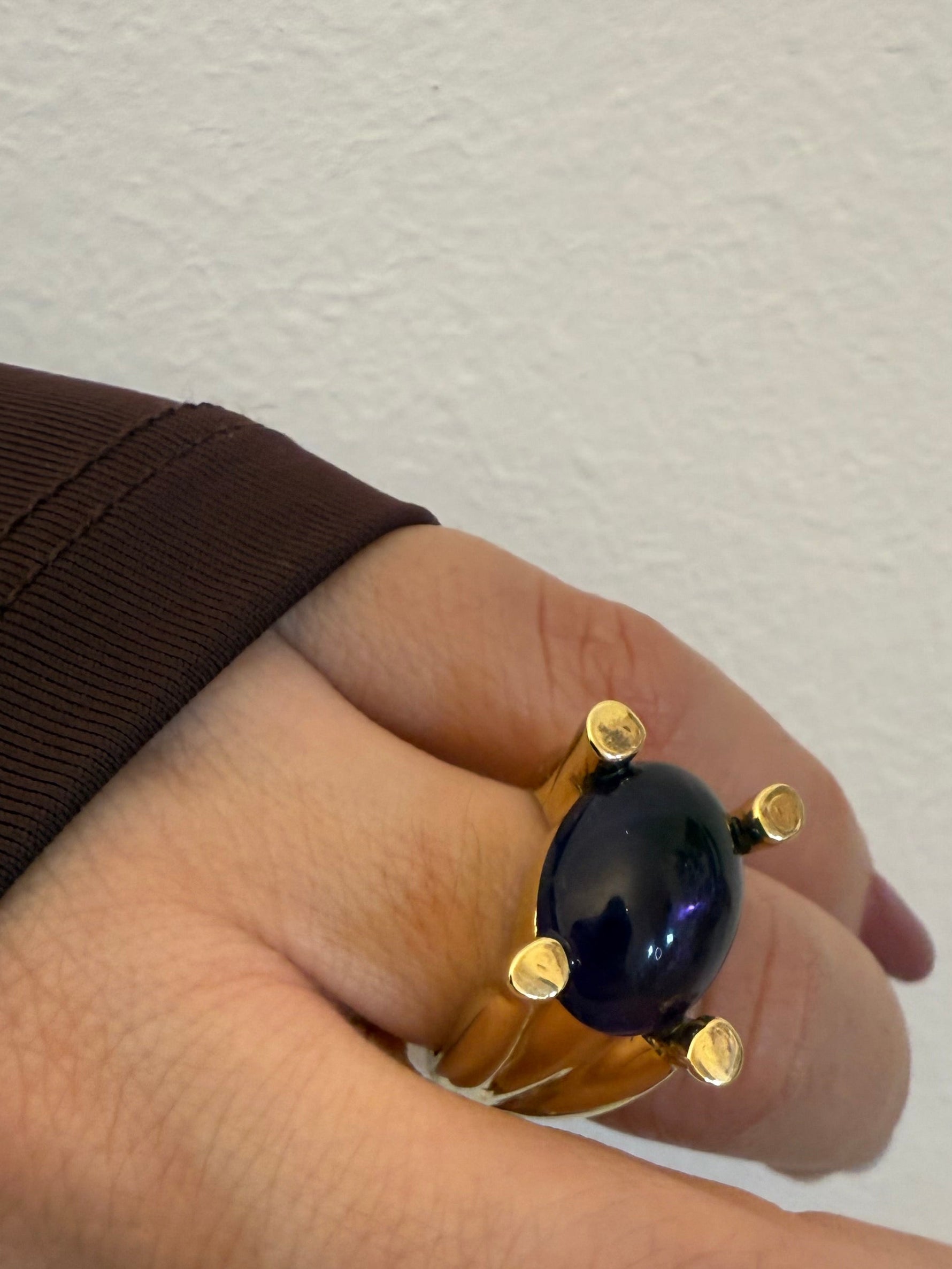 Anello Violet,in argento 925 con montatura in gold impreziosito da una pietra di colore viola.Perfetto per valorizzare ogni tipo di look.