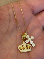 Una collana in argento 925, che unisce eleganza e simbolismo, perfetta per chi desidera portare con sé un messaggio di fede e forza interiore la delicata croce rappresenta protezione spiritualità mentre la corona aggiunge un tocco di regalità e raffinatezza.