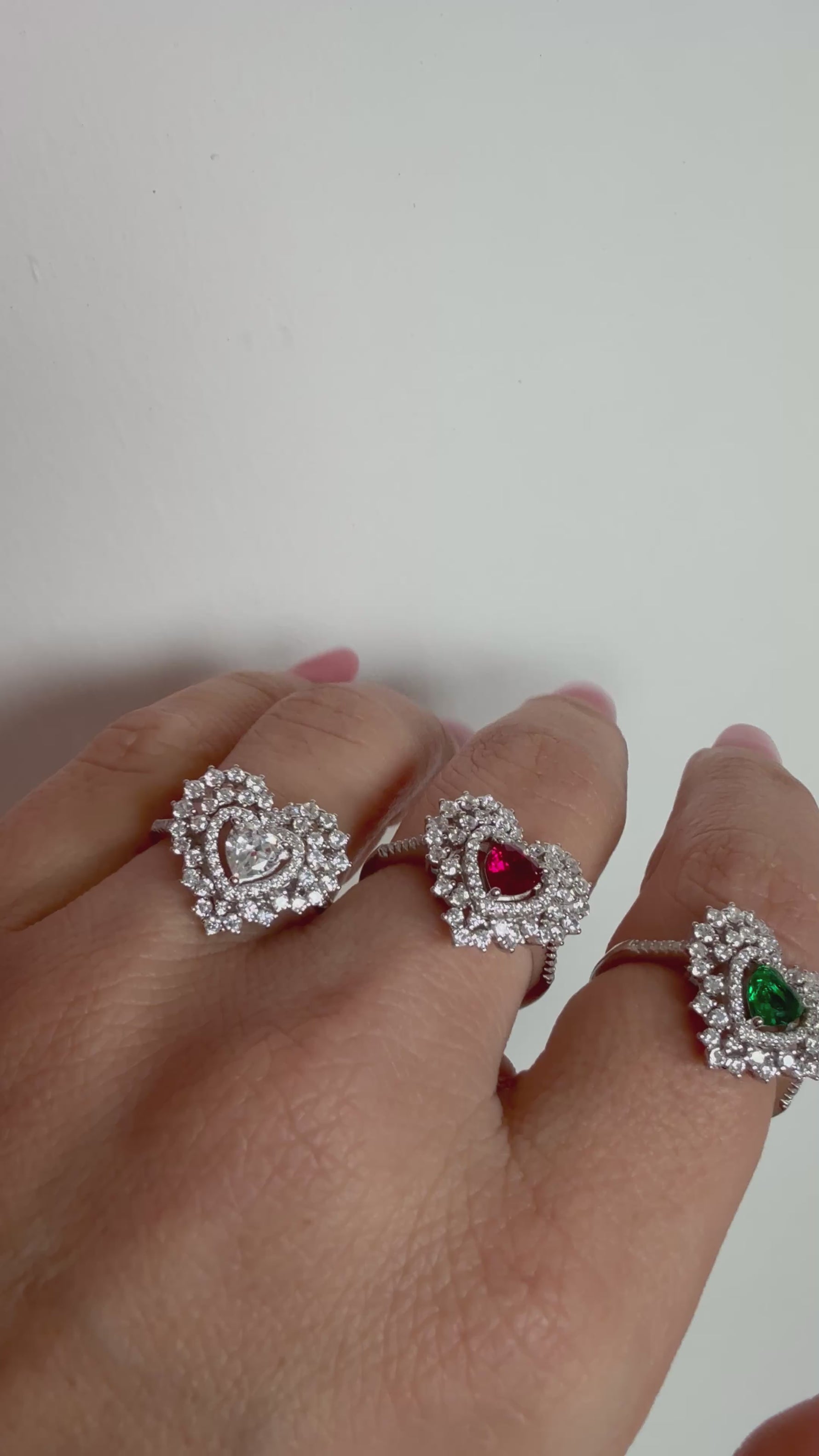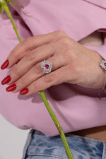 Anello Valentine a forma di cuore,realizzato in argento 925 impreziosito da pietre bianche e rubino,un classico intramontabile per San Valentino.
