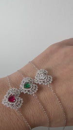 Bracciale Valentine a forma di cuore impreziosito pietre bianche e rubino,segno di amore e passione!un pezzo classico e intramontabile per il giorno di San va Valentino.